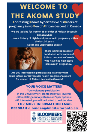 Addressing Known hypertensive disOrders of pregrancy in woMen of Afrian descent in Canada (The AKOMA Study...