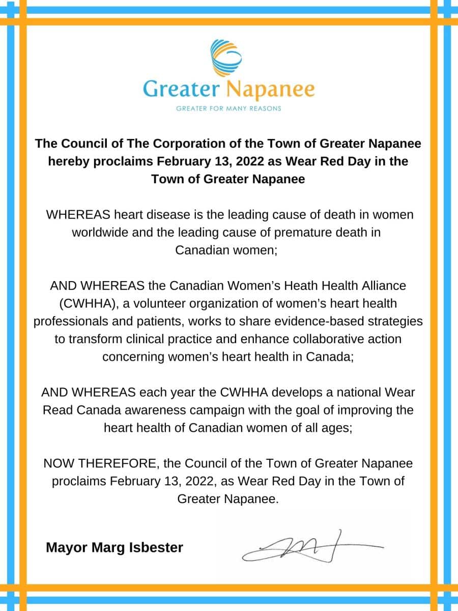 Provinces, territories, cities, and towns across Canada were raising awareness about women’s heart health by proclaiming February 13, as “Wear Red Canada” day.