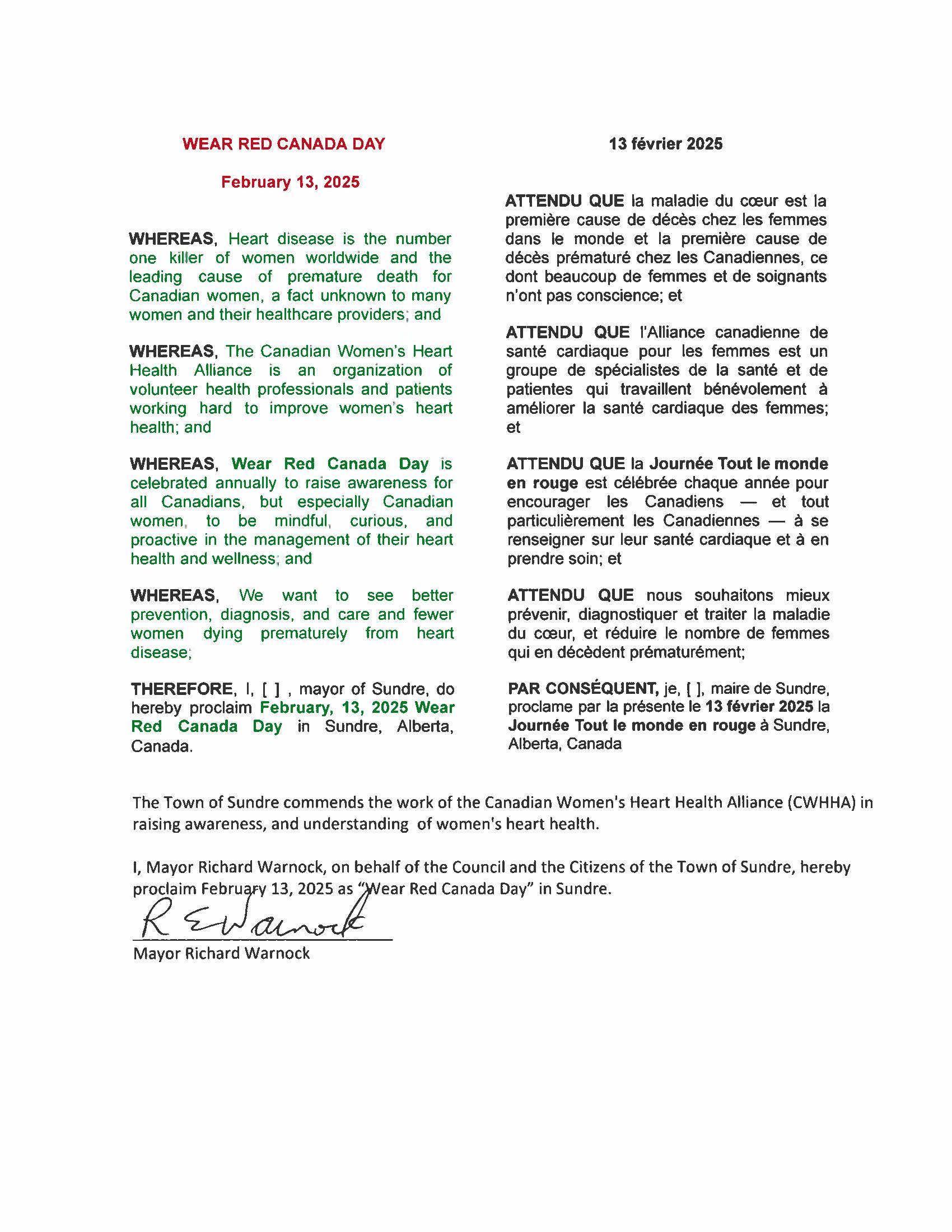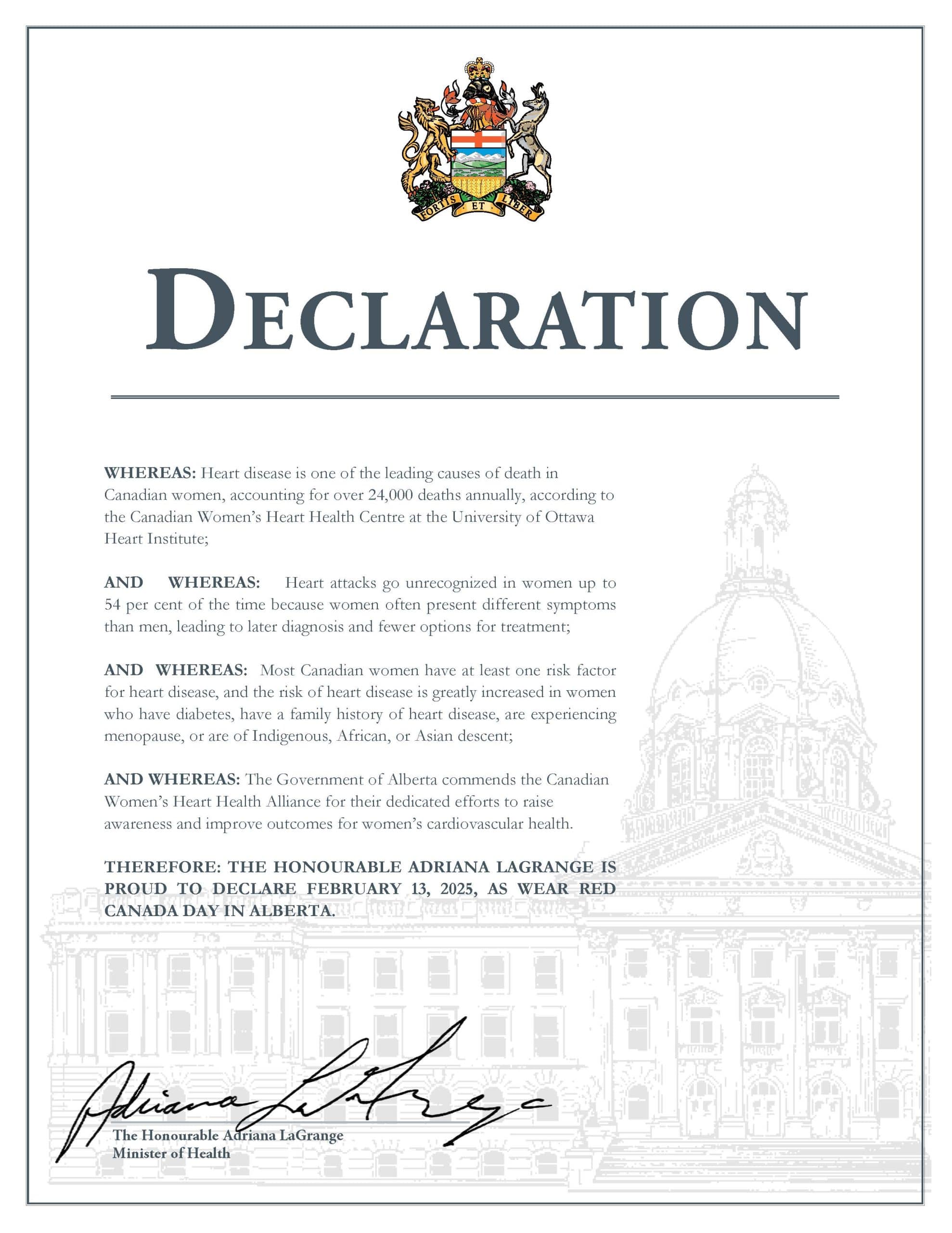 Provinces, territories, cities, and towns across Canada were raising awareness about women’s heart health by proclaiming February 13, as “Wear Red Canada” day.